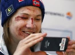 Dabei ist das alles gar nicht lustig. Als Hilde nach seinem furchtbaren Sturz beim ersten Springen der Vierschanzentournee in Oberstdorf im Auslauf lag, musste das Schlimmste befürchtet werden. Im Krankenhaus durfte er sich nicht bewegen, weil die Ärzte ihn auf eine Schädigung des Zentralnervensystems im Rückenmark untersuchten. Die bestätigte sich zum Glück nicht, einen Tag später durfte er das Krankenhaus verlassen. Eine Lähmung habe er nie befürchtet, sagt Hilde, „ich habe mich nach dem Sturz bewegen können, ich konnte nur nicht atmen, weil der Mund voller Schnee war“. Sein Sturz wirft die Frage auf, ob die Bedingungen, das Schneetreiben und die wechselnden Winde, nicht zu gefährlich waren. Doch der Norweger widerspricht. „Das war mein Fehler, ich bin 24 Jahre alt, ich springe seit 20 Jahren, ich sollte fähig sein, bei diesen Bedingungen eine Landung zu machen.“ Dann schiebt er einen seltsamen Vergleich nach: „Das ist wie bei einem Fußballer, der zum Elfmeter antritt und sich dabei den Rücken bricht.“